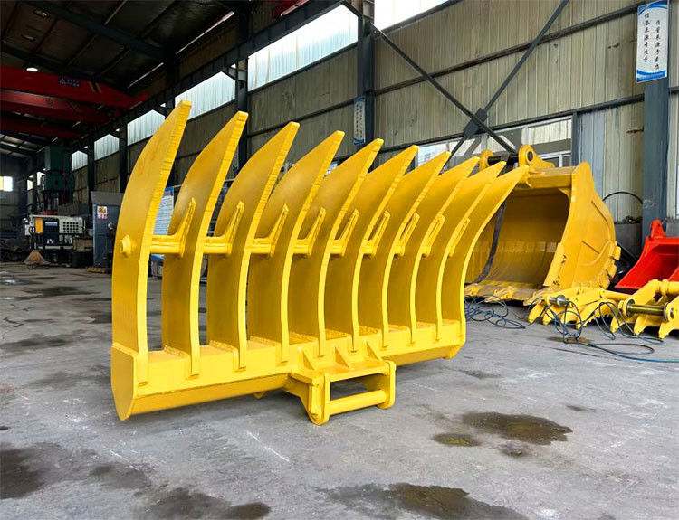 1. Hochleistungsbau: Der Bagger Scraper Rake Bucket ist entworfen, um starke grabende und ordnende Aufgaben mit seinem Hochleistungsbau zu behandeln.
